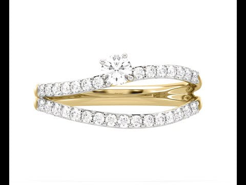 Two chic bands embedded with trendy cultivated diamonds curve along the band of this must-have accessory. This fashionable ring is a quintessential choice for all your daily wear.